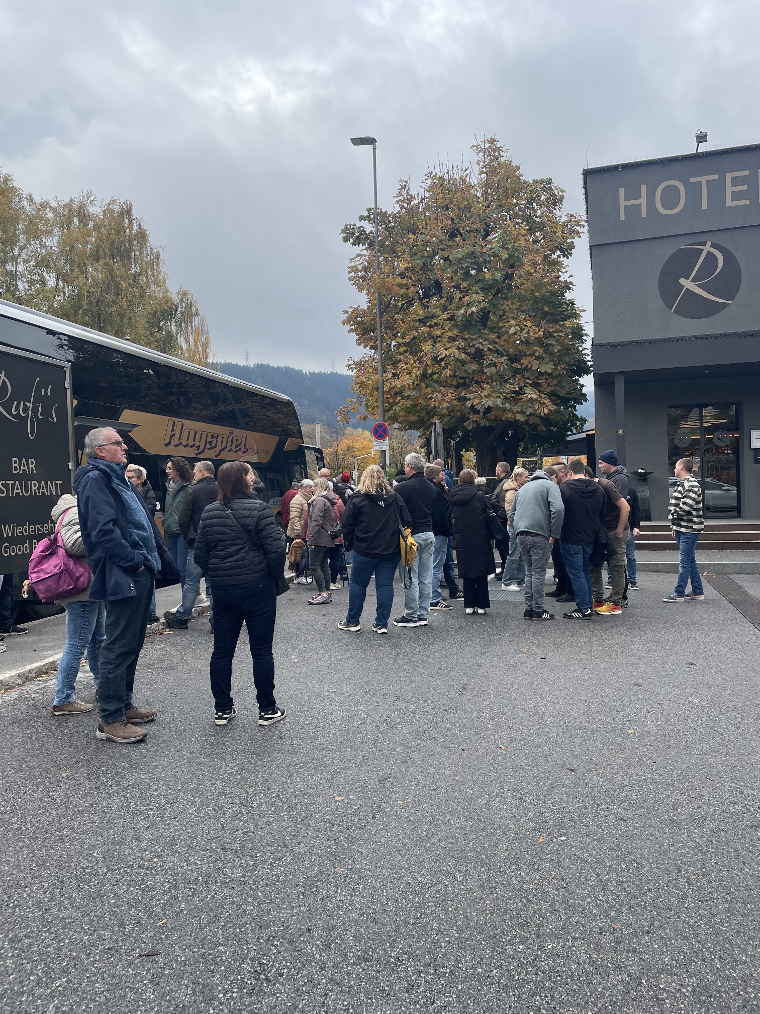 Am Wochenende vom 24.10. – 26.10.2025 fand ein mehrtägiger Ausflug unserer Feuerwehr statt. Am Freitagnachmittag traf sich die 60-köpfige Reisegruppe am Gerätehaus ein. Nachdem das ganze Gepäck und die Getränke verladen waren, konnten wir pünktlich um 14 Uhr mit einem Doppelstock Bus starten. Die Fahrt erfolgte über die A7 Füssen weiter über den Fernpass nach Innsbruck. Angekommen am Hotel erfolgte schnell das einchecken, bevor man sich wieder zum gemeinsamen Abendessen traf. Hierzu machte die Reisegruppe einen gemütlichen Abendspaziergang in die Innenstadt zum Stiftskeller. Gut gespeist machte sich die jüngere Generation anschließend auf, um das Nachtleben von Innsbruck zu erkunden und einige nahmen noch an der Hotelbar einen Absacker zu sich.