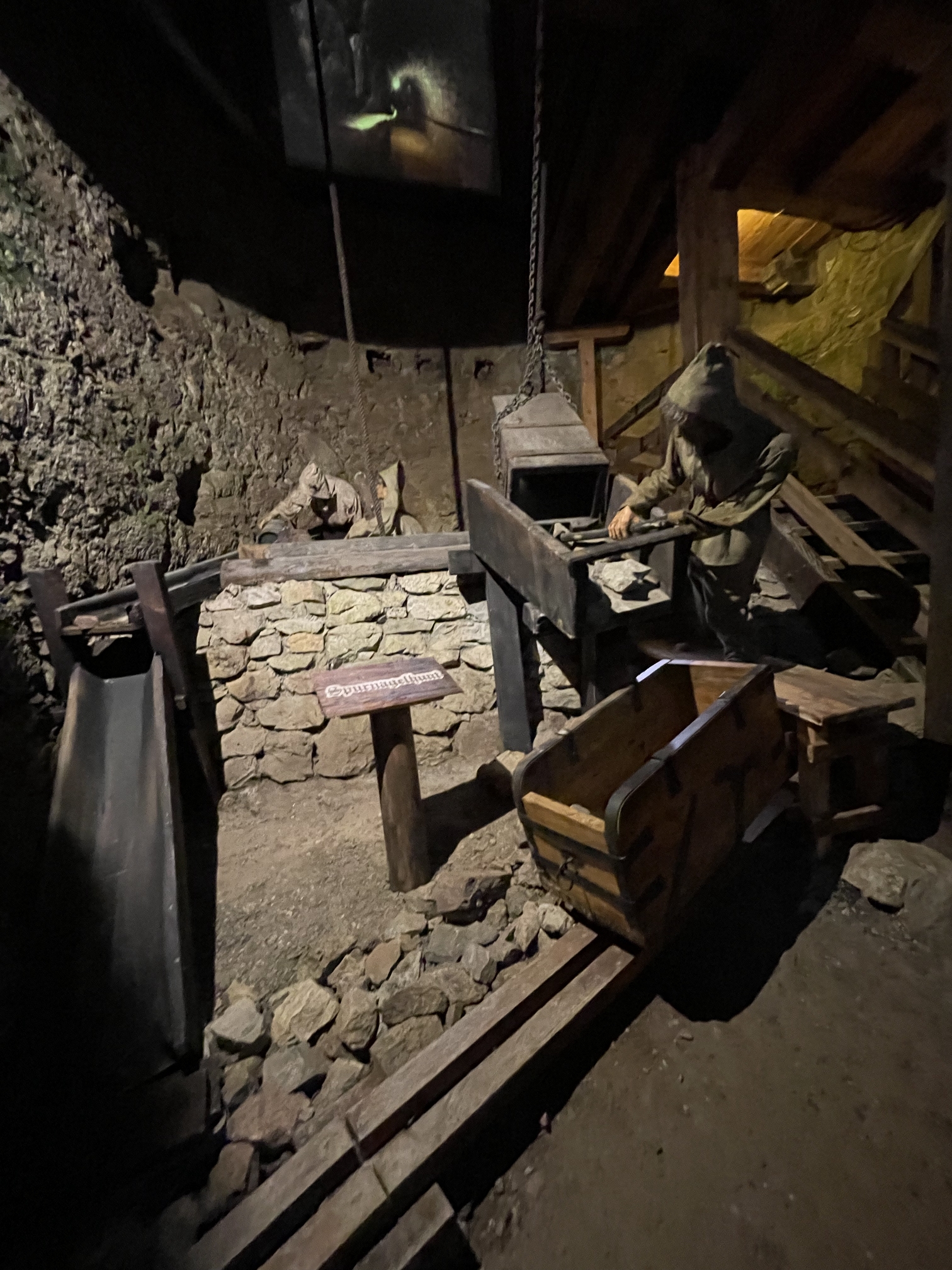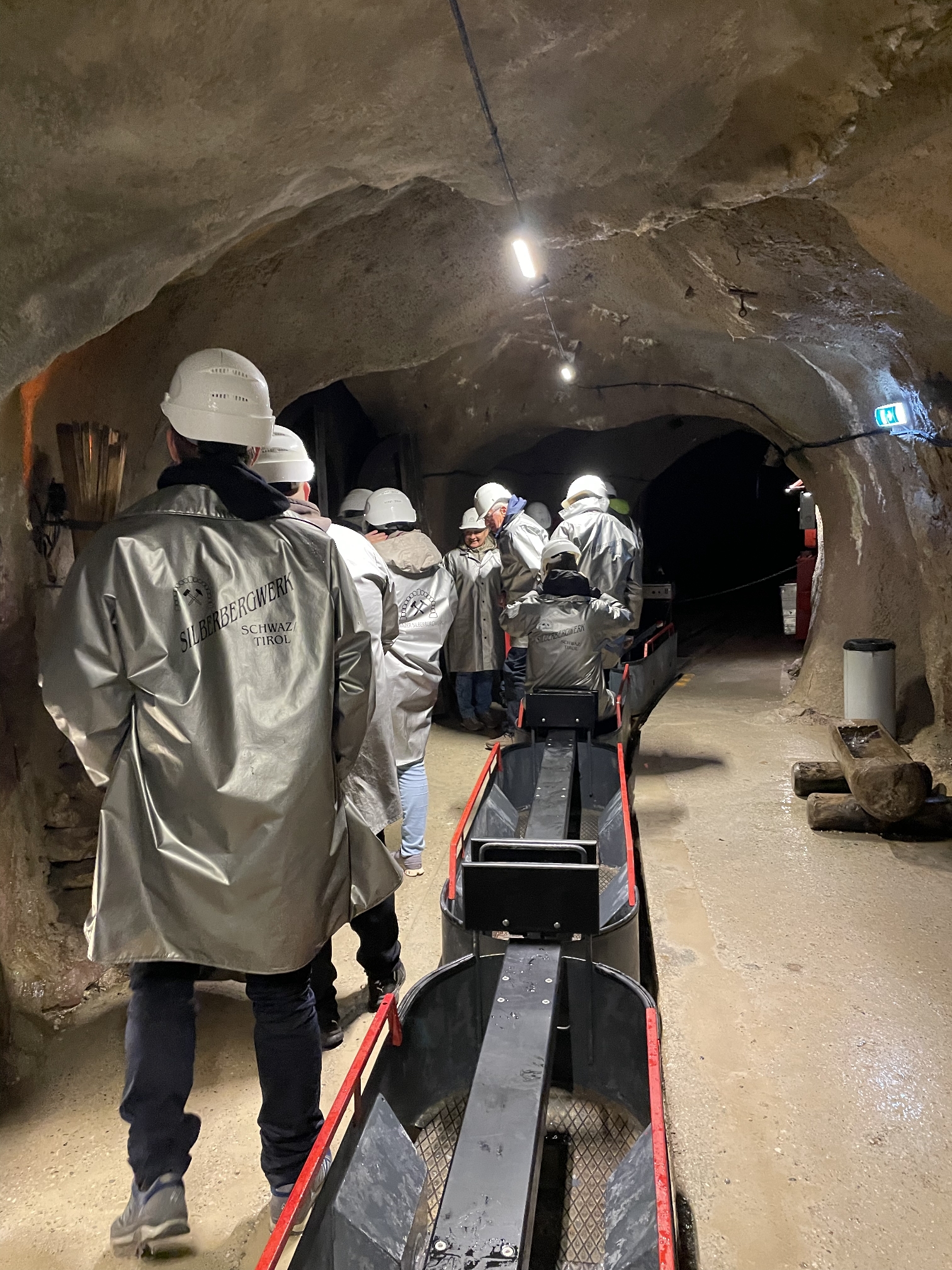 Am Sonntag ging es nach dem Frühstück weiter durch das Inntal nach Schwaz zum Silberbergwerk. Wieder aufgeteilt in zwei Gruppen ging es zeitversetzt mit einem Bähnle durch einen engen Tunnel 800m ins Stolleninnere. Von dort ging es dann zu Fuß mit dem Bergwerksführer weiter. Hier bekamen wir einen faszinierenden Einblick in das Raue Leben der Schwazer Bergknappen zur Zeit der Silberblüte im Mittelalter. Durch die rauen Arbeitsbedingungen hatten die Knappen nur eine Lebenserwartung von ca. 35 Jahren. Nach der einstündigen Führung ging es wieder zurück ans Tageslicht. Zum Abschluss stärkten wir uns noch im angeschlossenen Restaurant „Knappenkuchl“, bevor wir wieder die Heimreise antraten.