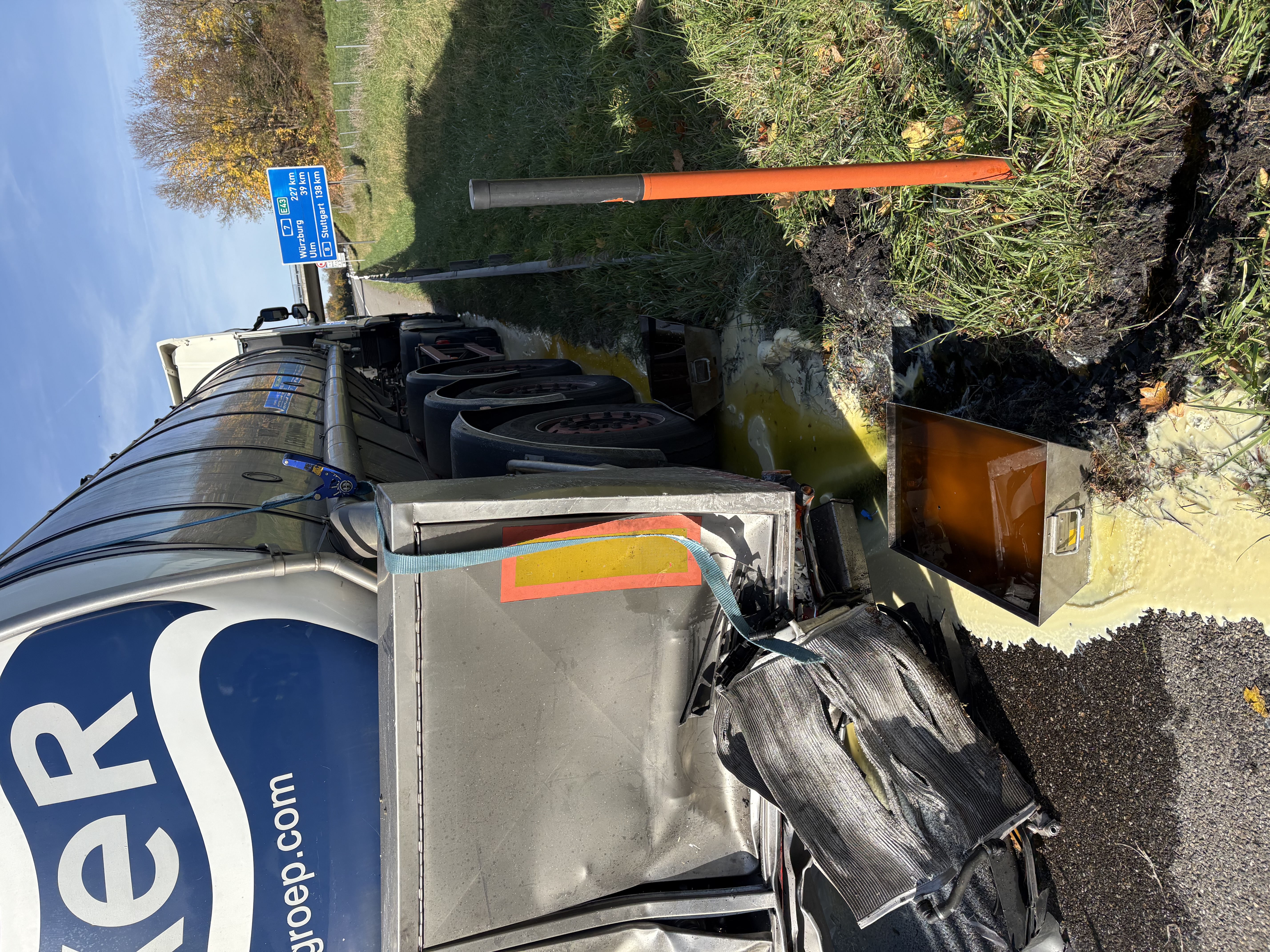 Am Lkw, welcher Speisefett geladen hatte, entstand durch den Unfall eine Leckage an einem Auslass. Wir dichteten die Leckage etwas ab und nahmen die auslaufende Flüssigkeit auf. Das flüssige Fett wurde nach dem Erkalten fest, sodass keine weitere Gefahr für die Umwelt bestand.