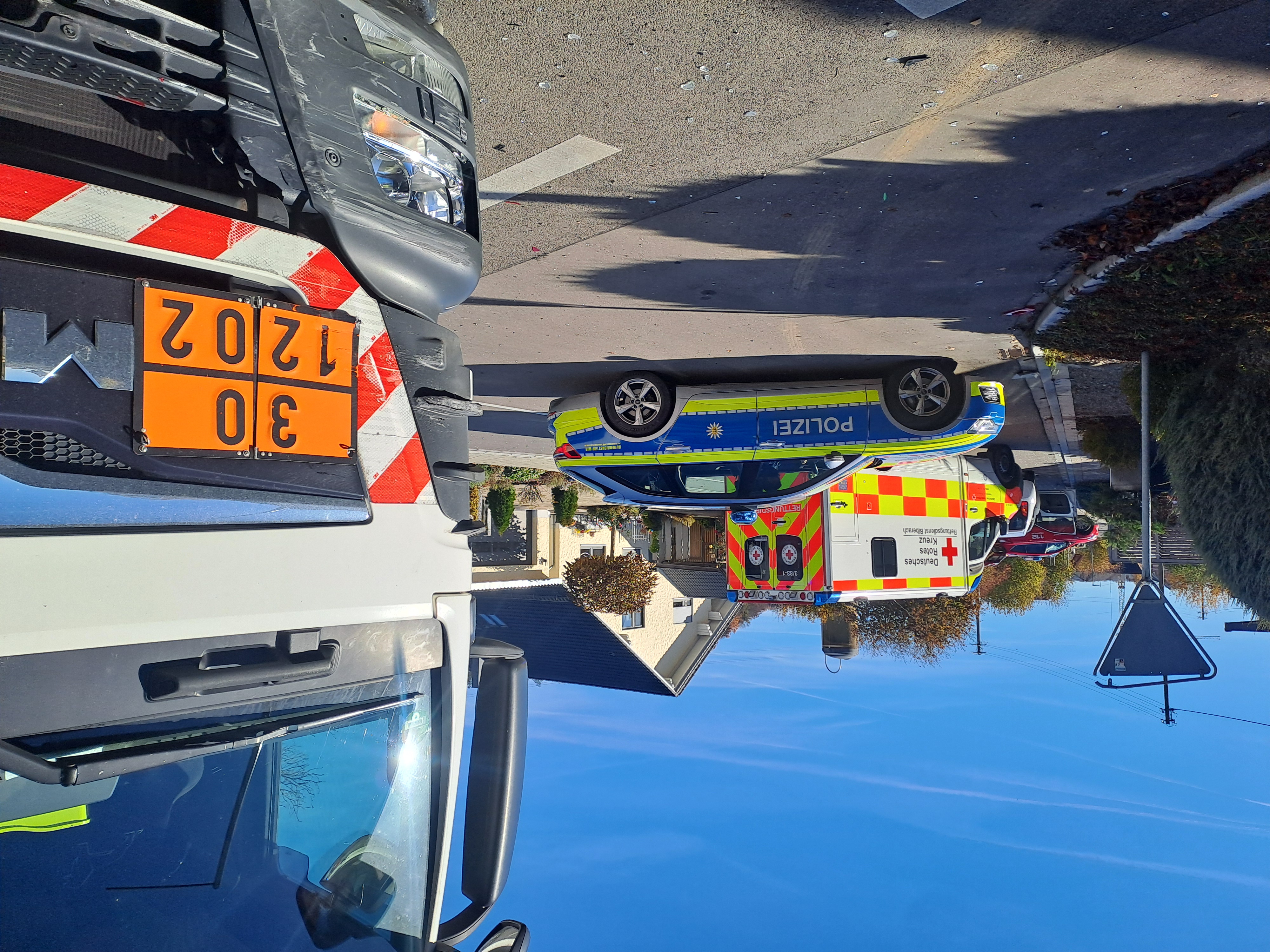 Beim Eintreffen der ersten Kräfte bestätigte sich die Lage glücklicherweise nicht. Die verletzte Person war bereits aus dem Fahrzeug und wurde vom Rettungsdienst versorgt.