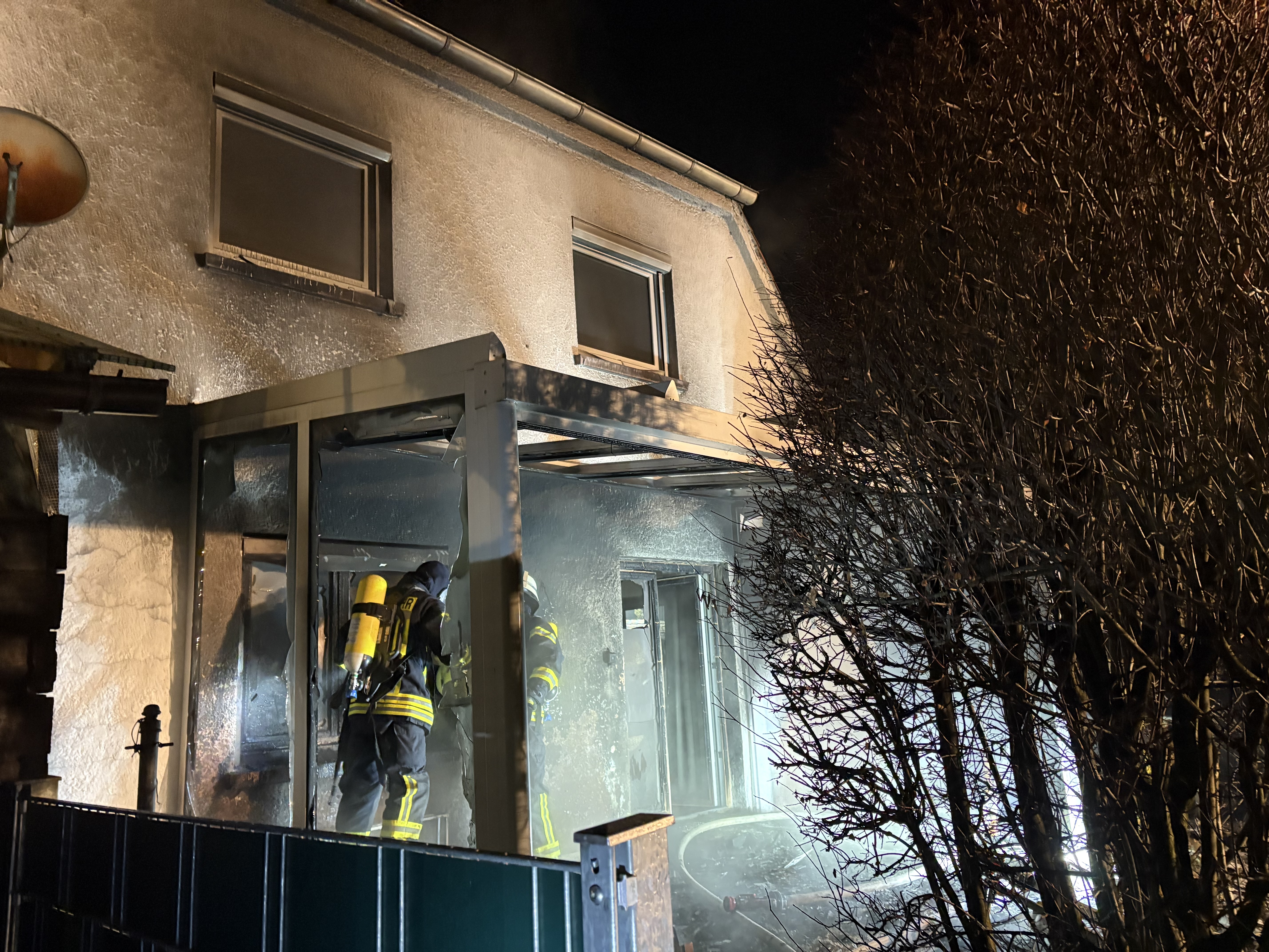 Erneut ging es für die Feuerwehr Erolzheim zu einem Brandeinsatz nach Dettingen. An einem Doppelhaus brannte ein angebauter Wintergarten in voller Ausdehnung. Die Feuerwehr Dettingen begann umgehend mit der Brandbekämpfung. Wir stellten für die Atemschutzgeräteträger einen Sicherheitstrupp. Außerdem wurde die Drehleiter in Stellung gebraucht. Nachdem das Feuer gelöscht war, wurde das Gebäude noch belüftet und mit der Wärmebildkamera kontrolliert.
