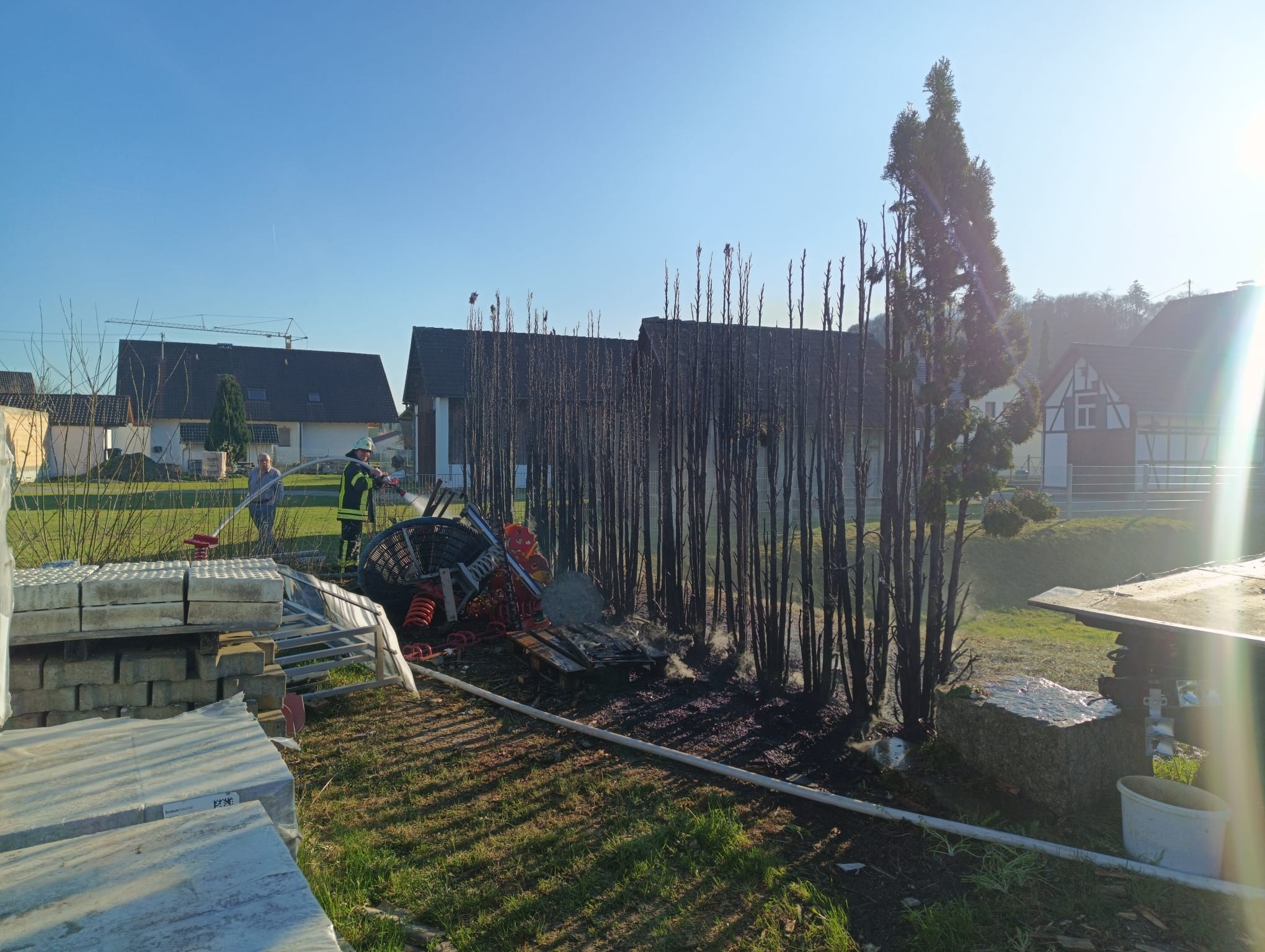 Eine Thujahecke brannte auf einer Länge von ca. zehn Metern auf dem Grundstück der Feuerwehr.