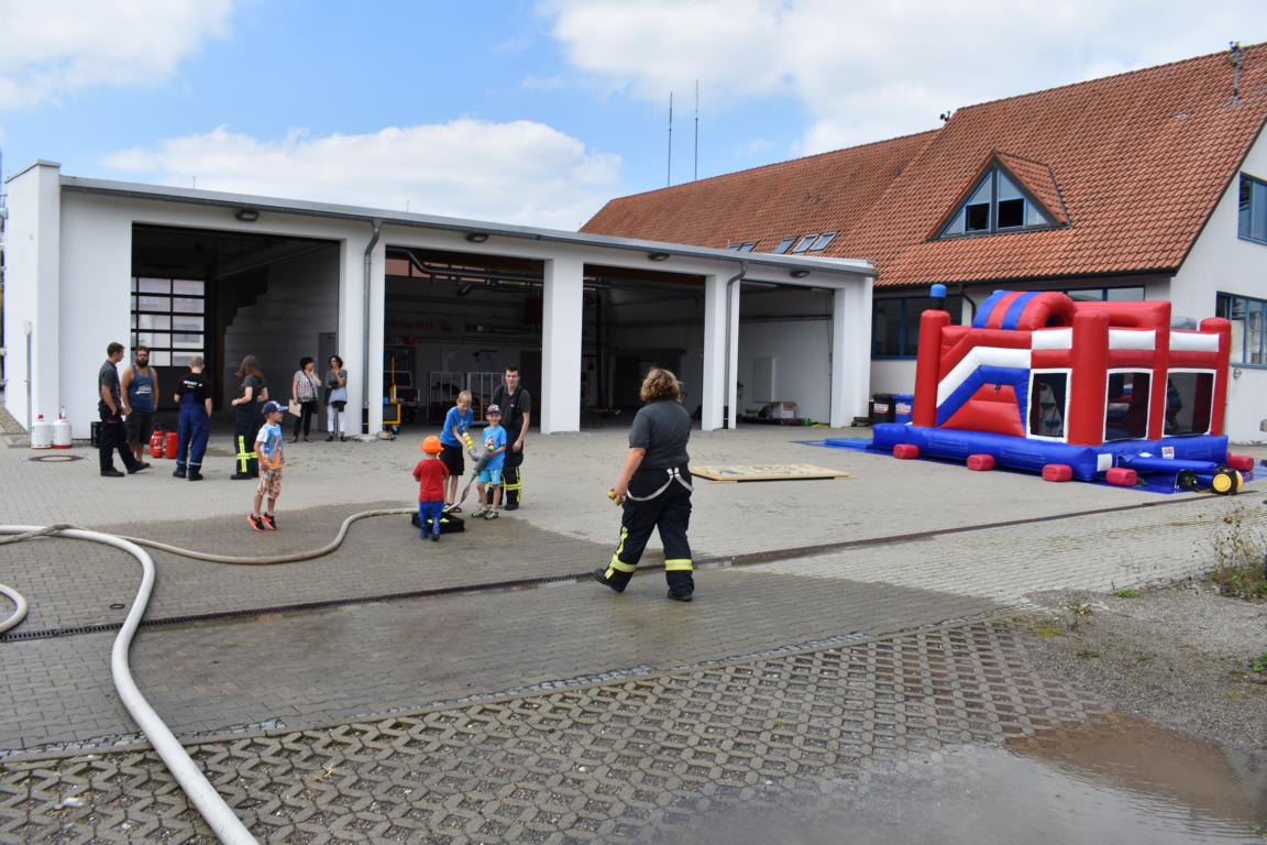 Unter anderem wurden rund um das Gerätehaus verschiedene Attraktionen vorbereitet. So war die Hüpfburg des Kreisfeuerwehrverbandes eines der Highlights. Außerdem waren verschiedene Wasserspiele sowie der fire-trainer aufgebaut. Im Lehrsaal wurden den Kindern anhand des Rauchdemohauses unter anderem die Entstehung eines Brandes sowie das Absetzen eines Notrufs näher erläutert.