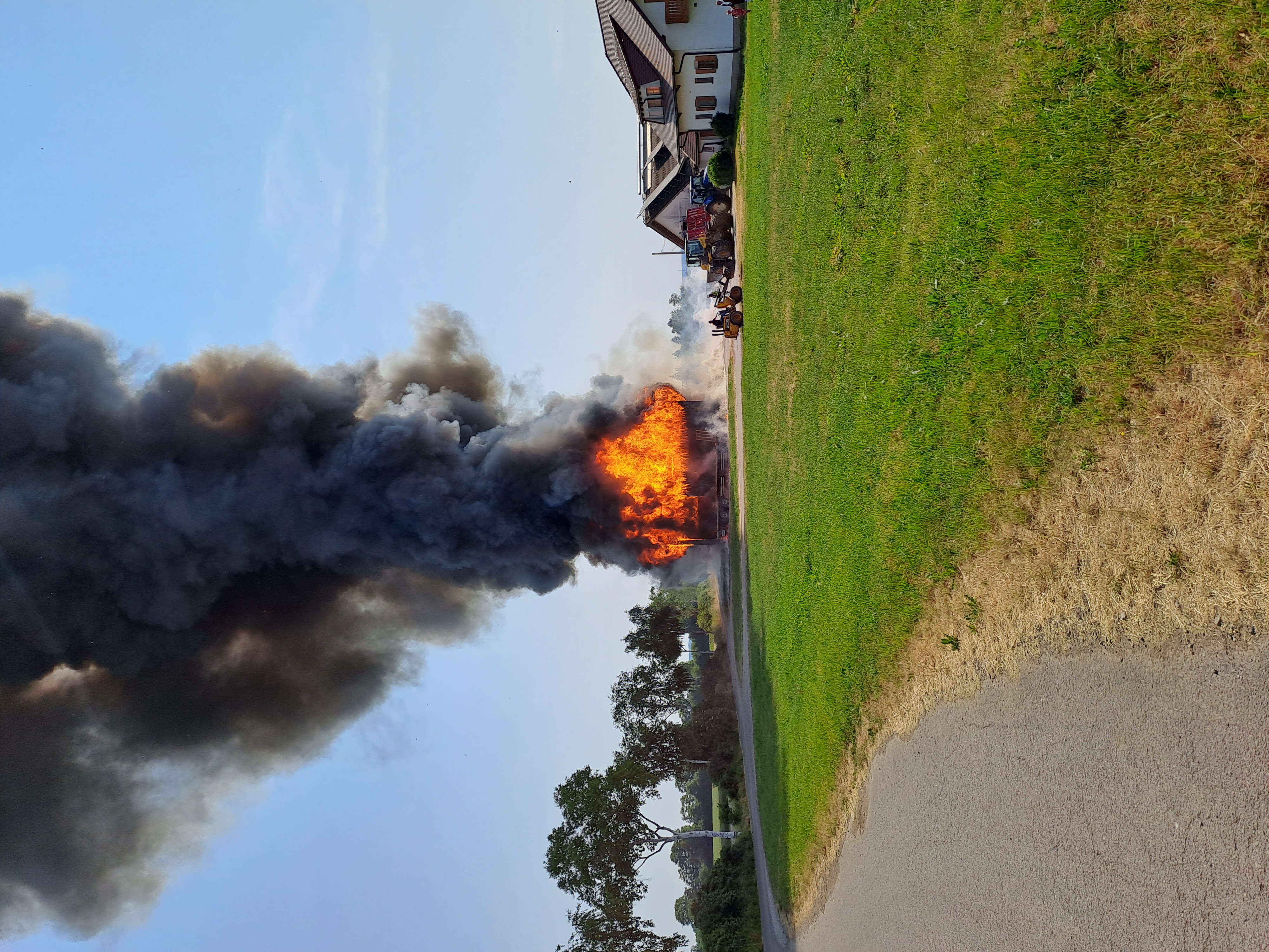 Am Sonntag Morgen wurden wir erneut mit unserem Löschzug sowie der Führungsgruppe nach Kirchdorf alarmiert. Dieses mal in den Ortsteil Oberopfingen. Bereits auf der Anfahrt zum Gerätehaus war eine große Rauchsäule über Oberopfingen sichtbar.