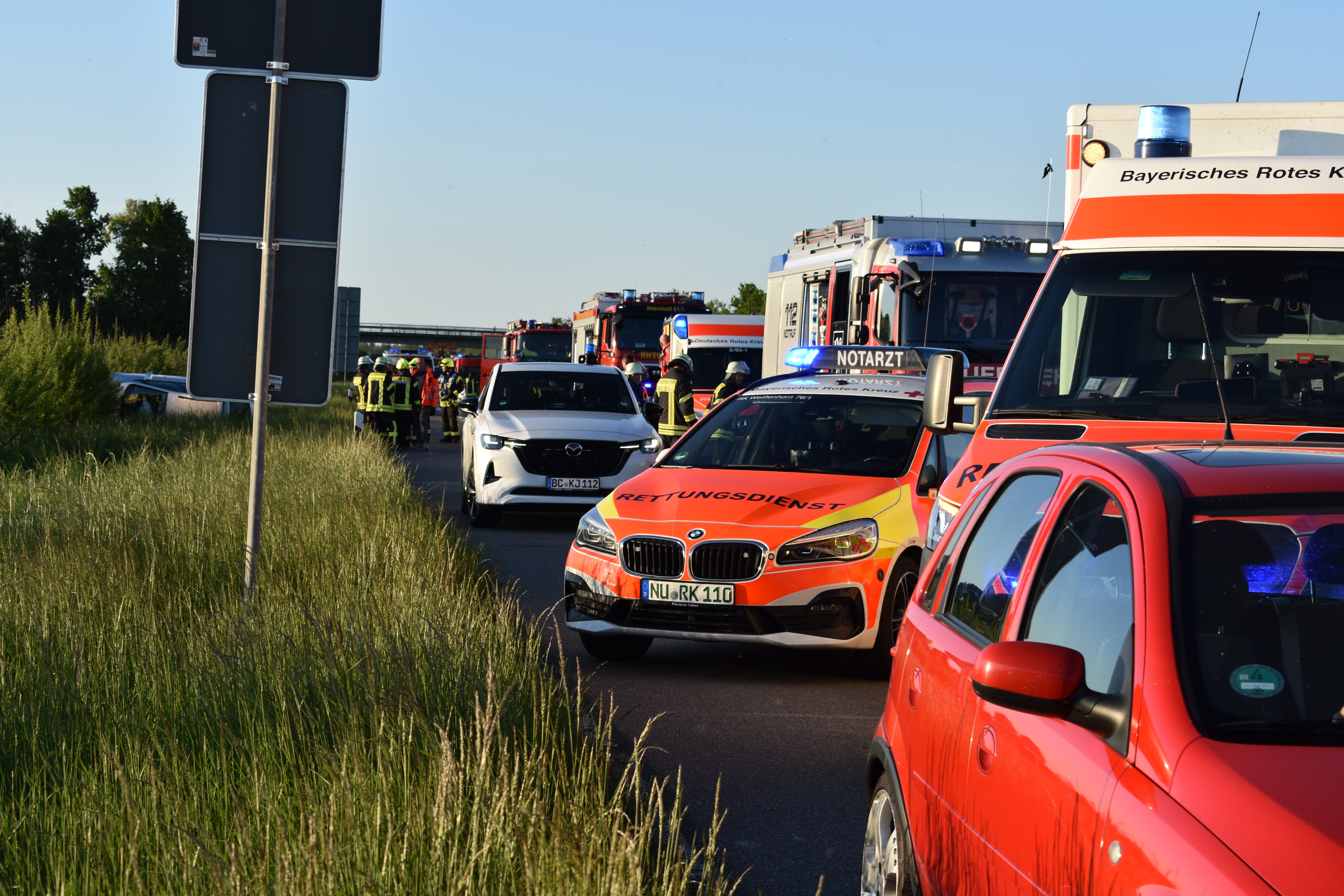 Nachdem wir auf die Autobahn aufgefahren waren, wurde die Fahrtrichtung korrigiert, da der Unfall sich zwischen den Anschlussstellen Dettingen und Berkheim befand. Gemeinsam mit der ebenfalls alarmierten Feuerwehr Altenstadt fuhren wir die Einsatzstelle an.