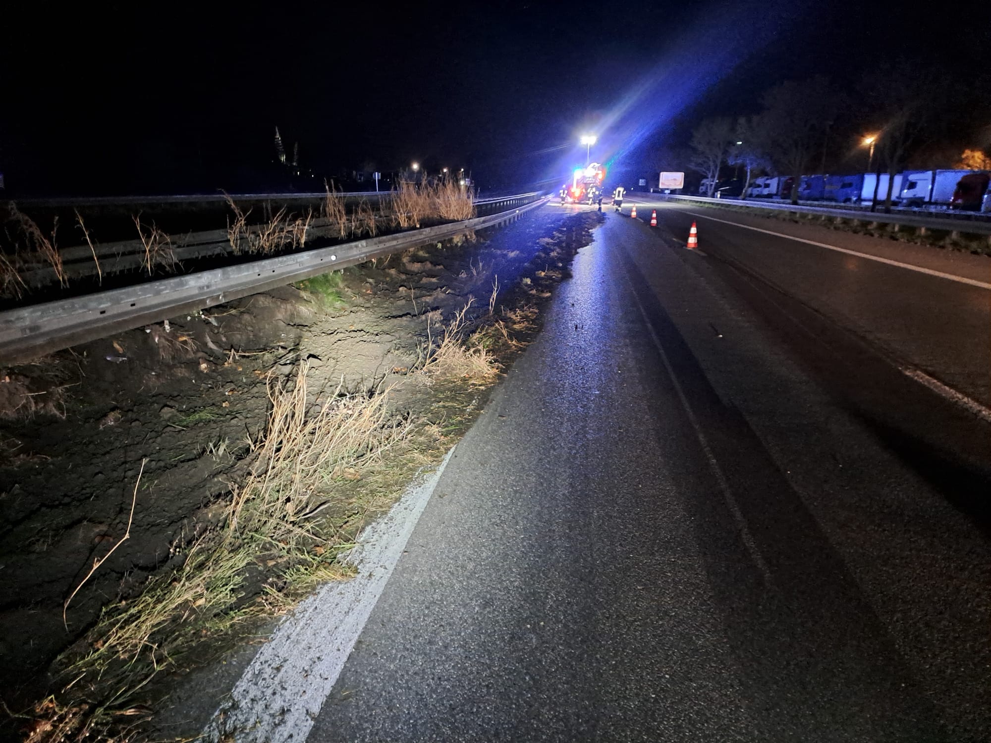 Hier war ein unbekannter Verkehrsteilnehmer, im Bereich der linken Spur, von der Fahrbahn abgekommen und hatte, auf einer Länge von ca. 100m, massiv Erdreich auf die Fahrbahn geschleudert. Wir sicherten die Einsatzstelle ab und beseitigten die Verschmutzung.