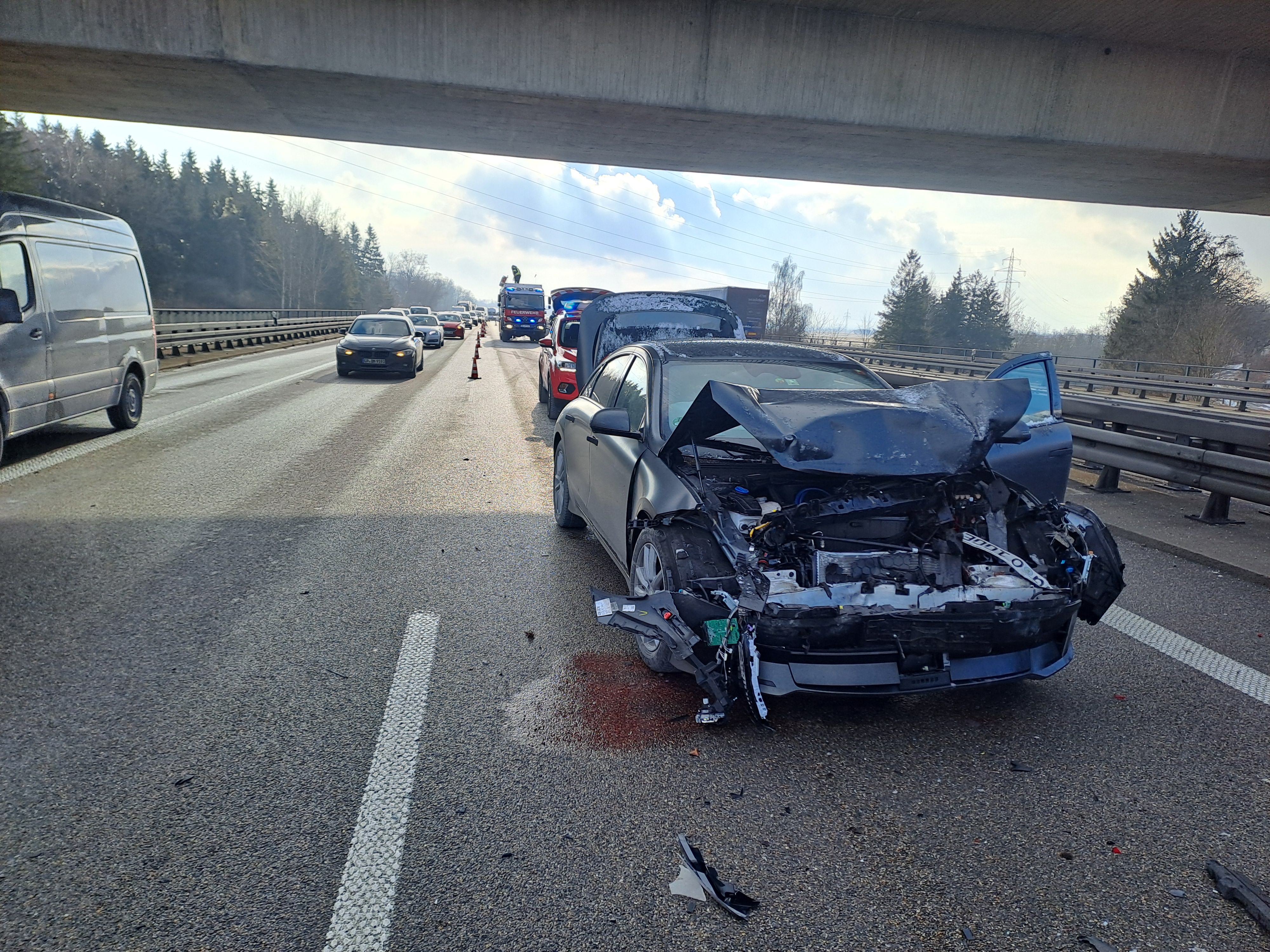 Zu einem Verkehrsunfall zwischen den Anschlussstellen Berkheim und Dettingen kam es heute auf der A7. Insgesamt 4 Pkw waren in den Unfall verwickelt. Alle Fahrzeuge kamen auf der linken Spur zum Stehen. Die Insassen blieben augenscheinlich alle unverletzt,  wurden jedoch vom Rettungsdienstpersonal in Augenschein genommen.